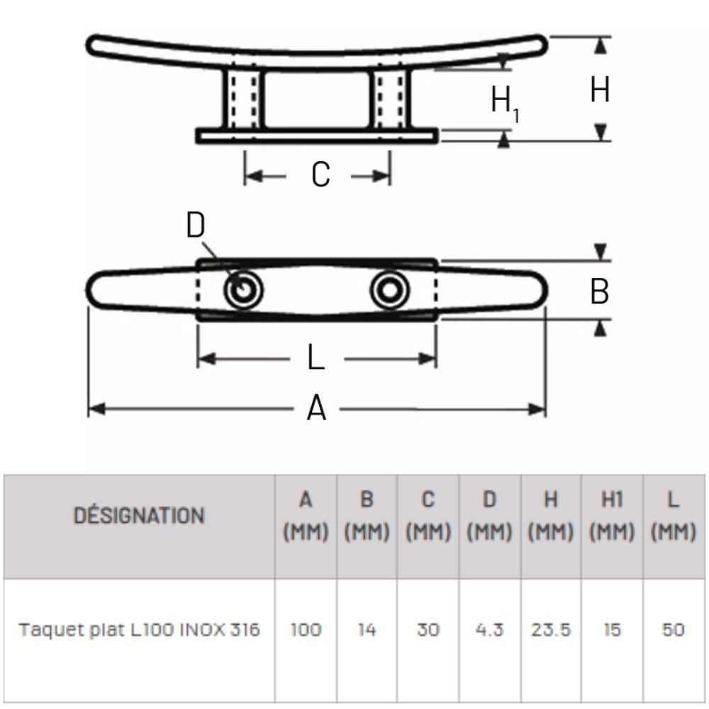 Le taquet mural permet de bloquer et ranger le cordage du palan après mise en tension de la voile. Il assure une installation propre et sécurisée en évitant que le cordage ne reste libre.